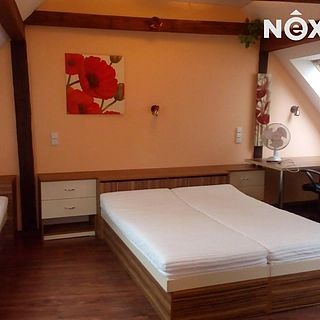 Pronájem bytu v podkroví bytového domu v ulici Nežárecká, Jindřichův Hradec. Dispozice 2+kk nabízí předsíň, koupelnu se sprchovým koutem a toaletou, ložnici...