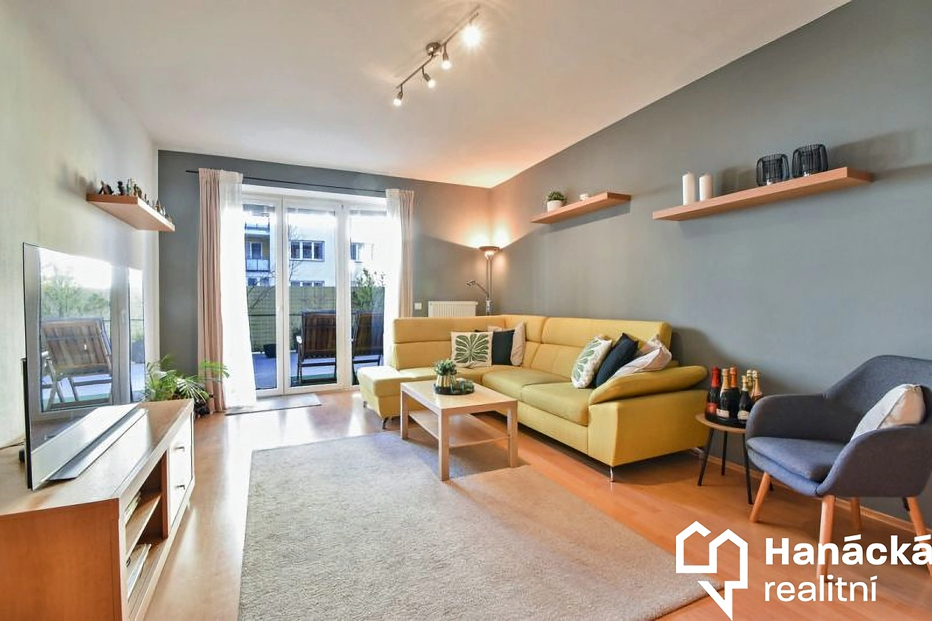 S výhradním zastoupením nabízíme ke koupi velmi pěkný kompletně vybavený cihlový byt o dispozici 2+kk s velkou terasou a zděným sklepem v Olomouci na ulici Peškova. Jedná se o byt v osobním vlastnictví nacházející se ve zvýšeném přízemí pětipodlažního cihlového bytového domu (postaveného v roce 2007) s výtahem a bezbariérovým přístupem. Byt má praktické dispoziční uspořádání a nadstandardní podlahovou plochu 62,1 m2. Prostorná terasa s výměrou 40,9 m2 je přístupná jak z obývacího pokoje, tak i z ložnice. Je orientovaná východním směrem a zásadním způsobem zvyšuje užitnou plochu bytu a možnost relaxovat, obklopit se zelení, něco si venku ugrilovat apod. Kuchyň je od obývacího pokoje částečně oddělena barovým stolem a prostorem pro stolování. Koupelna je vybavena vanou, umývadlem a disponuje i prostorem pro pračku a sušičku. WC je samostatné. K bytu náleží také zděný sklep cca 2,8 m2. Vytápění bytu je řešeno ústředním topením z dálkového zdroje, ohřev vody je centrální pro celý objekt. Celkově se jedná o velmi vkusně, moderně a přitom prakticky řešený byt s nízkými měsíčními náklady na bydlení. V kupní ceně je zahrnuto veškeré vybavení bytu (mimo TV) a rovněž veškeré vybavení terasy. Koupi bytu je možné financovat hypotékou, vhodné i jako investice k následnému pronájmu. Bližší informace u makléře zakázky..