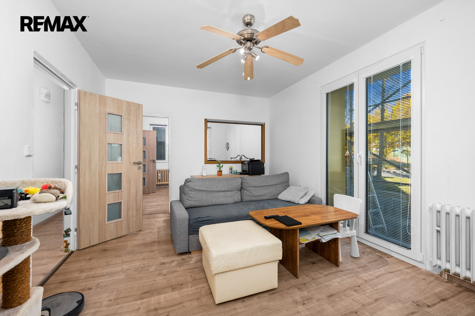 Bytová jednotka o ploše 65 m2 je šikovně dispozičně rozdělena na dvě ložnice, obývací pokoj s novým balkonem, kuchyni, koupelnu se sprchovým koutem a toaletou a prostornou předsíň. Byt i bytový dům právě prošly rekonstrukcí a revitalizací. Byt je osazen novými plastovými okny se žaluziemi i sítěmi, zabezpečen protihlukovými, protipožárními dveřmi, má novou vyzděnou koupelnu s WC, po celé podlahové ploše (vyjma koupelny) je položena plovoucí podlaha a byly udělány nové rozvody elektřiny v mědi. Nabízený byt je udržovaný a působí příjemným dojmem. K bytu navíc náleží sklepní kóje a možnost užívání přilehlé garáže. V rámci revitalizace domu bylo provedeno zateplení fasády a sklepních prostor, výměna oken i ve společných prostorách domu a osazení nových balkonů.