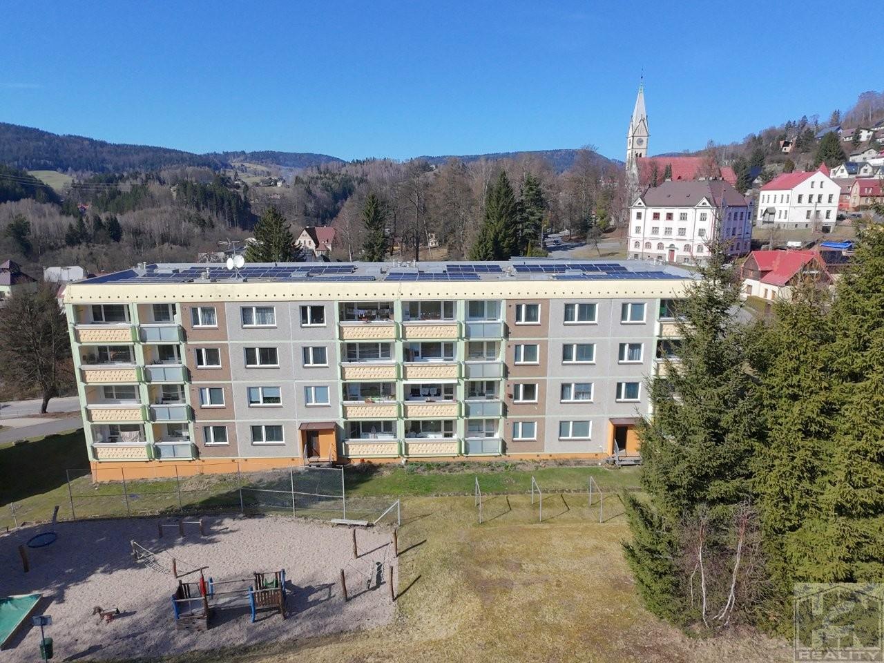 Nabízíme Vám k prodeji družstevní byt 3+1 v Tanvaldě na okraji sídliště Šumburk ve Vítězné ulici, dobrá dosažitelnost všech služeb - obchody, škola, školka, autobus, vlak. Byt se nachází ve 2. podlaží ve čtyřpodlažním panelovém domě, který byl v roce 2025 osazen solárními panely, které snižují náklady na elektřinu společných prostor v domě i v jednotlivých bytech. Dispozice bytu: předsíň (chodba), 1. pokoj 12,28 m2, 2. pokoj 12,28 m2, 3. pokoj (obývací) 19,46 m2, lodžie (jižní strana), kuchyň 11,59 m2, koupelna, WC a příslušenství mimo byt - sklepní kóje. Nízké provozní náklady. Volný ihned popř. dohodou. S vyřízením hypotéky Vám rádi pomůžeme. Pro více informací a domluvení nezávazné prohlídky bytu neváhejte kontaktovat makléře.