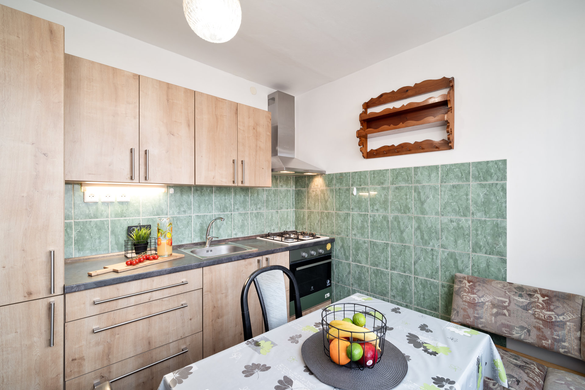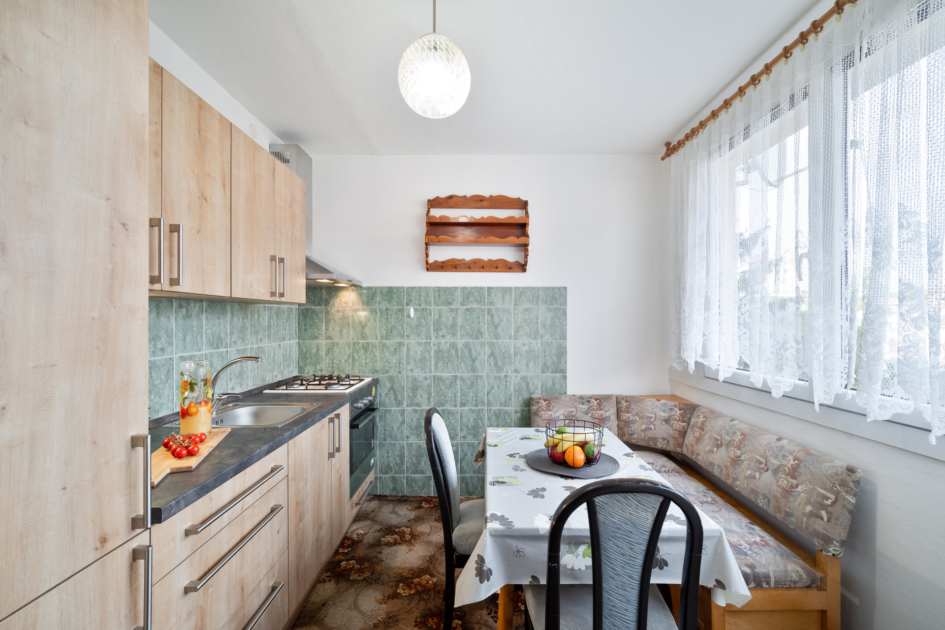 Obývací pokoj a kuchyně jsou orientovány na jihovýchod, obě ložnice pak na severozápad.