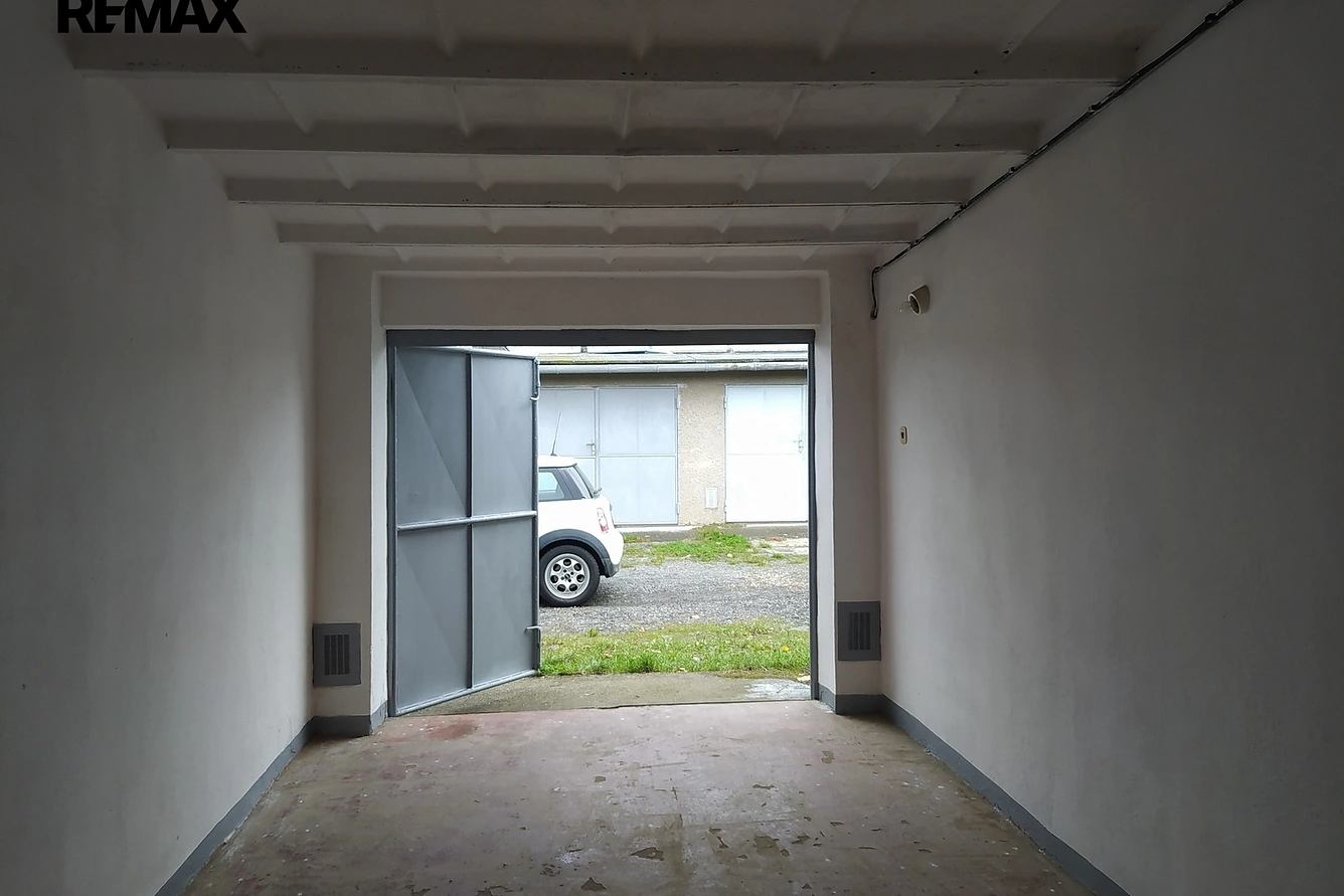 Garáž je suchá, jsou zřízeny větrací průduchy v přední i zadní části, které zajišťují optimální cirkulaci vzduchu. K dispozici je také elektrická energie o napětí 230 V, a garáž má svůj vlastní elektroměr.