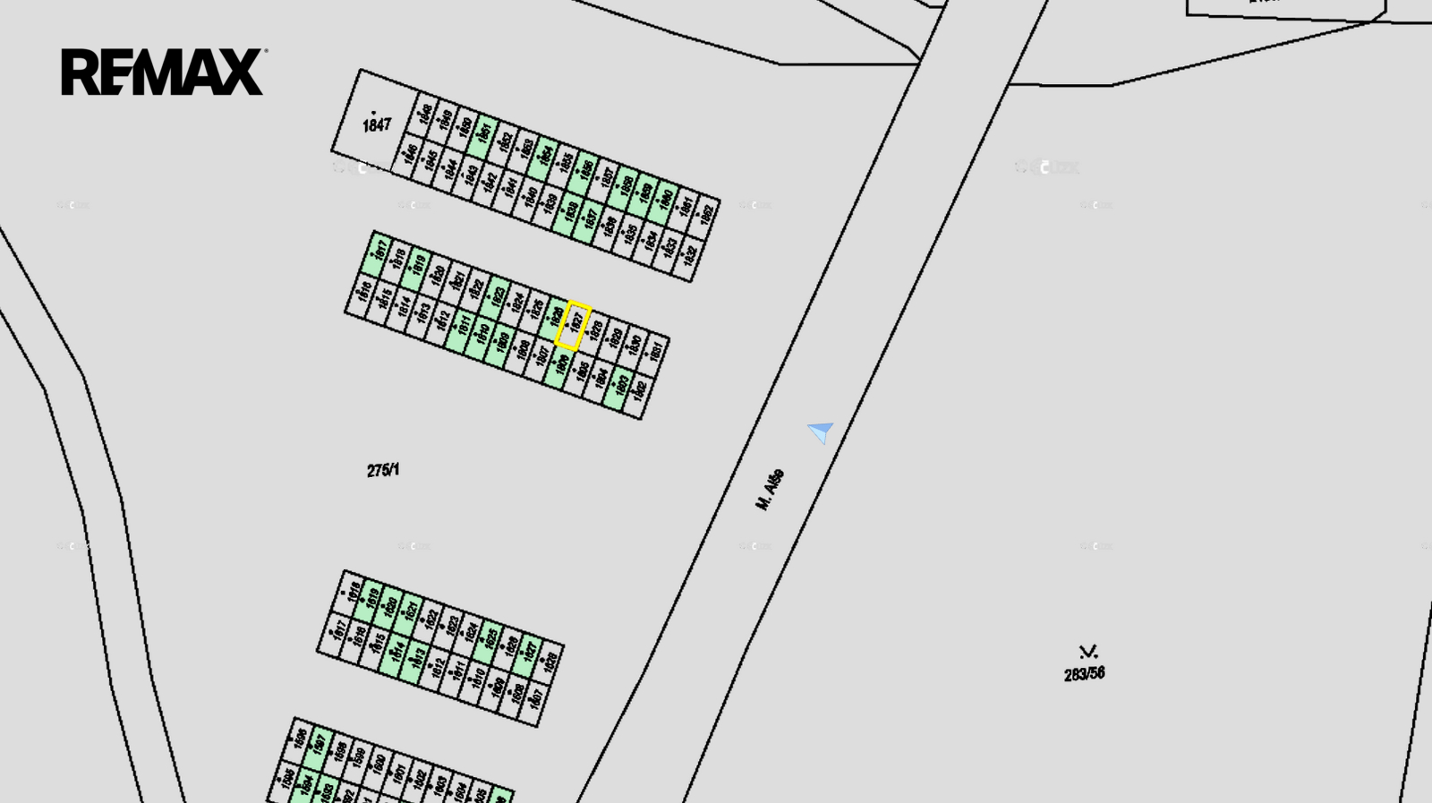 Přístup ke garáži je po obecní zpevněné cestě. (Mikoláše Alše)