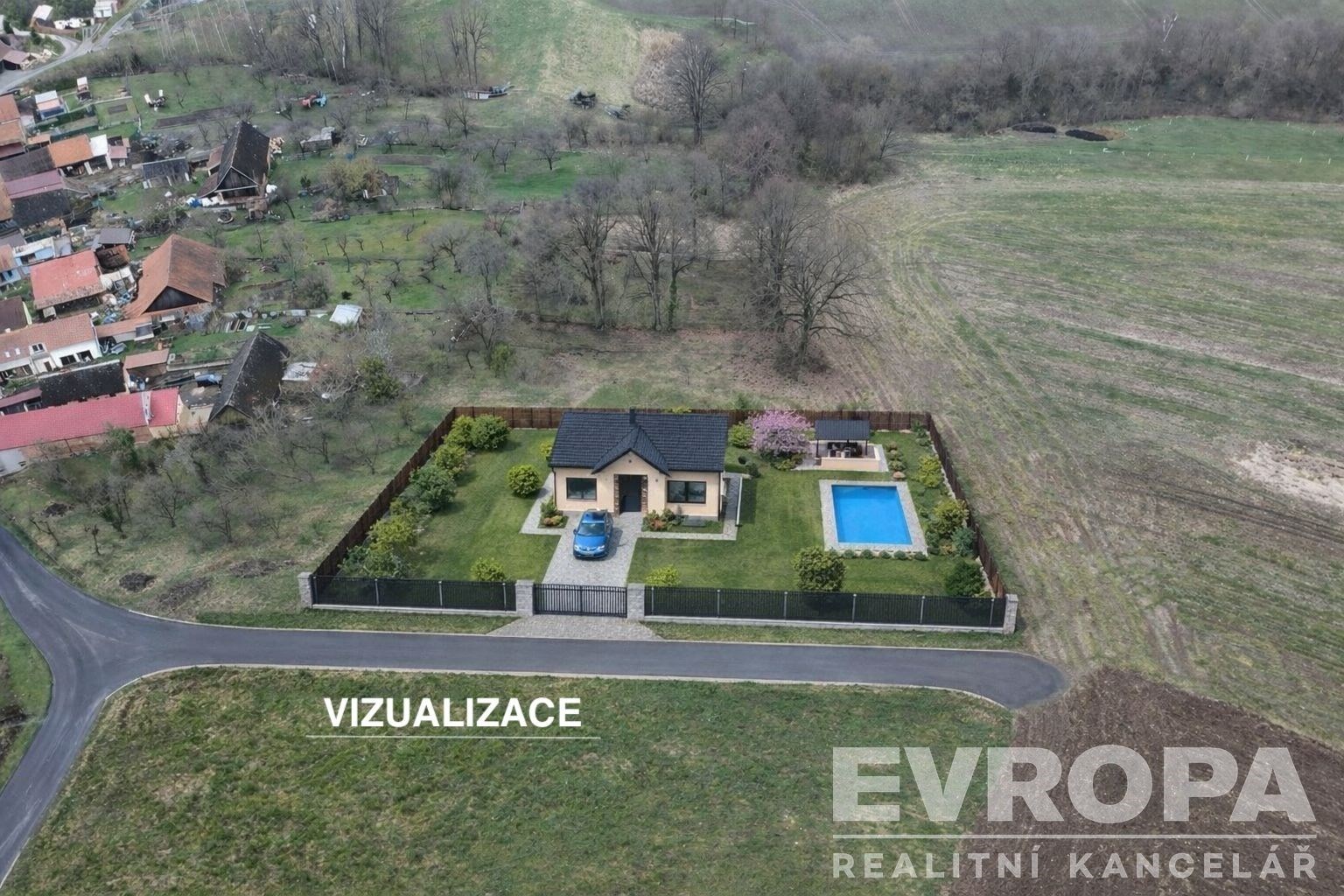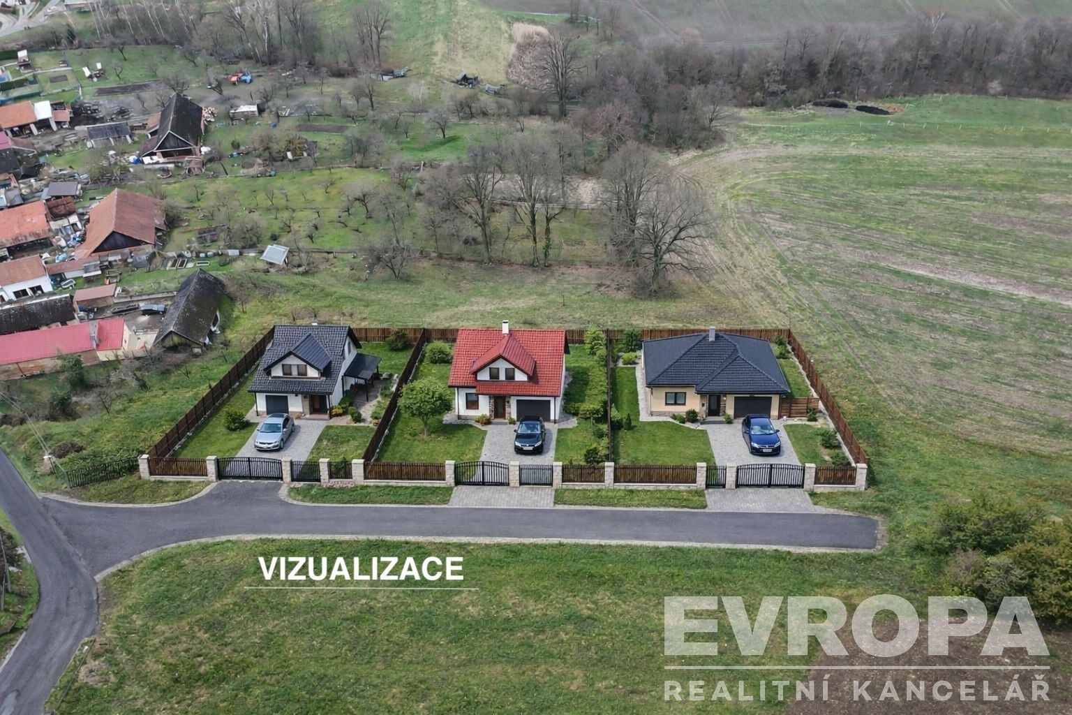 Pozemky jsou na samotném kraji Komárovic, z toho plyne absolutní klid a výhled do krajiny.