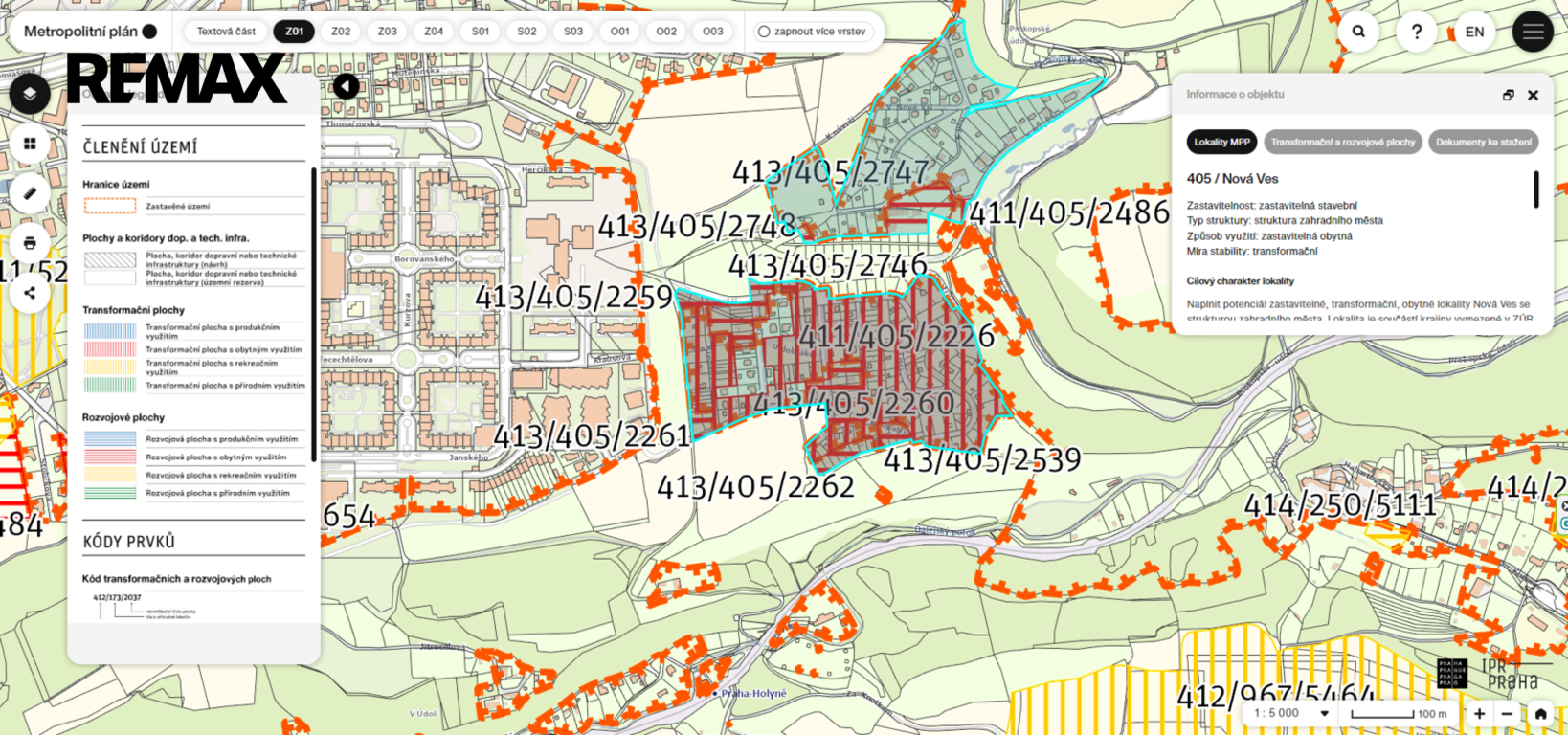 Současné zařazení pozemků konstatuje zahrady se stavbou pro rodinnou rekreaci, v rámci schvalování nového metropolitního plánu se očekává přeřazení na plochu s obytným využitím.