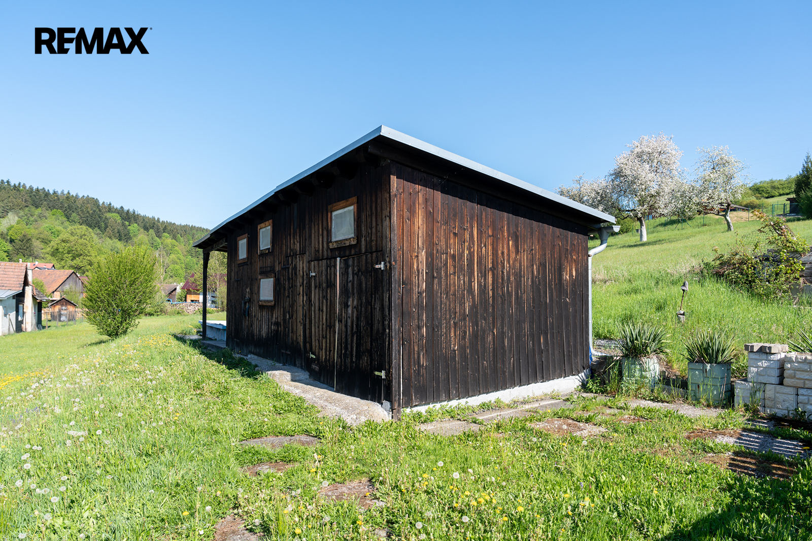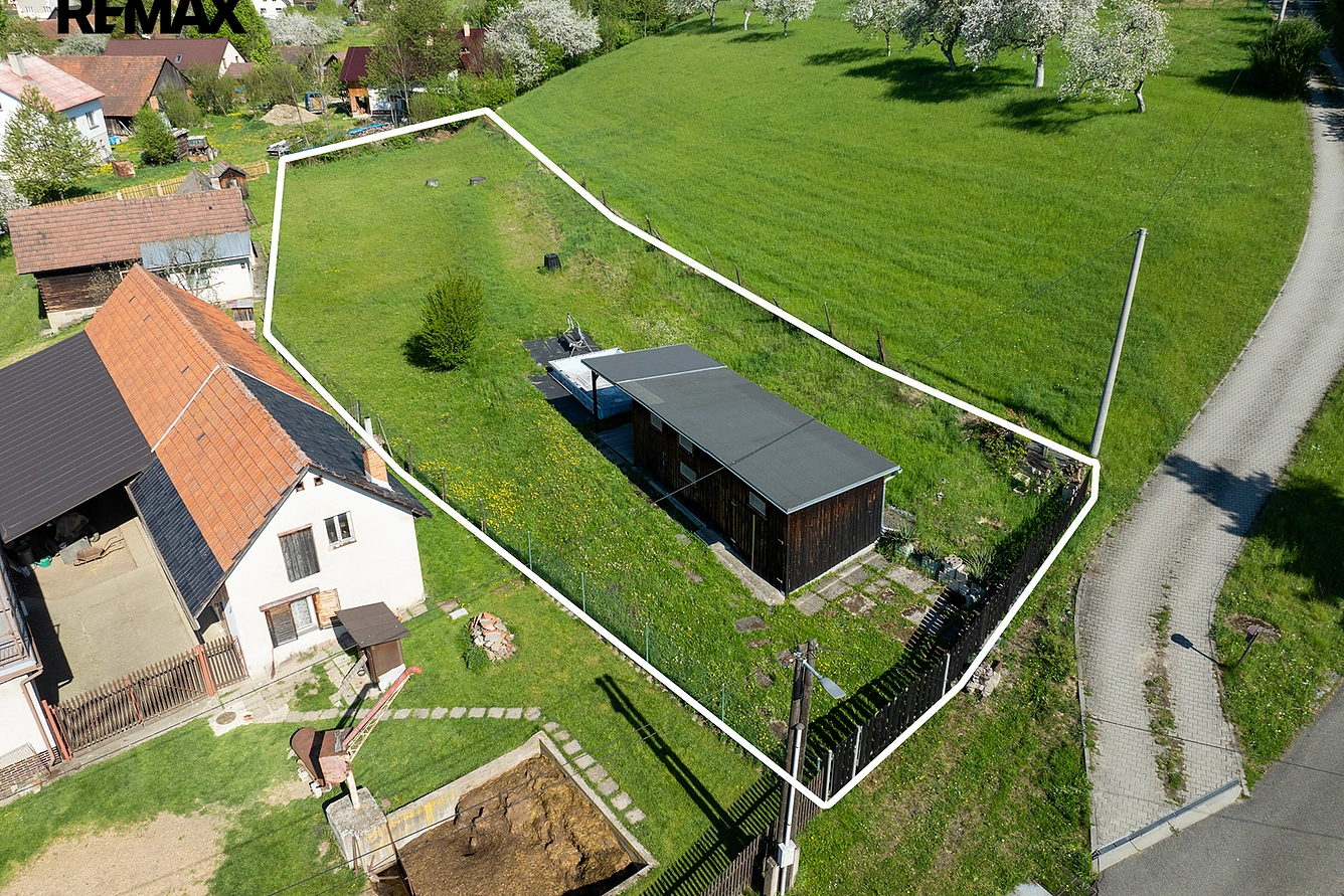 Součástí pozemku je aktuálně také stavba bez čísla popisného/evidenčního, která může sloužit k dočasné rekreaci, jako zázemí při výstavbě apod.