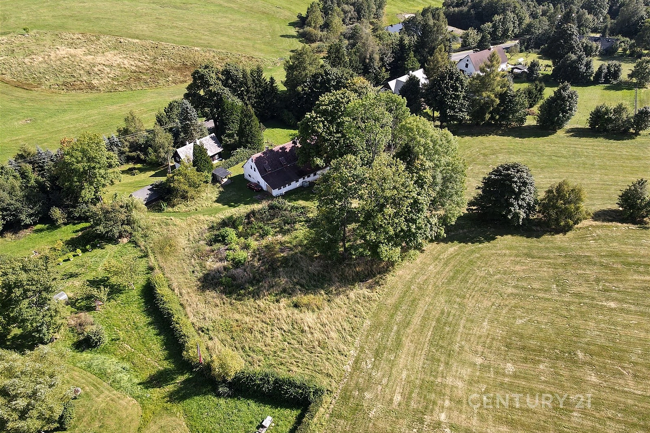 Zastavitelný pozemek s travní plochou a vlastní příjezdovou cestou vše celkem o ploše 1.800 m2 je v územním plánu veden jako bydlení smíšené venkovské při zachování příslušných regulativů ÚP. Původně zde stál dům se stodolou.