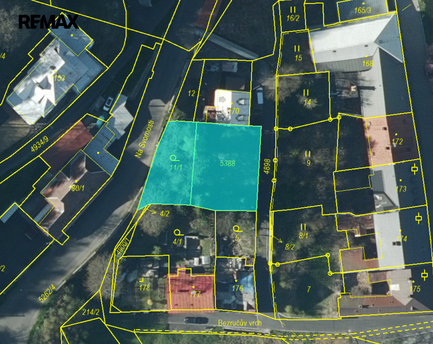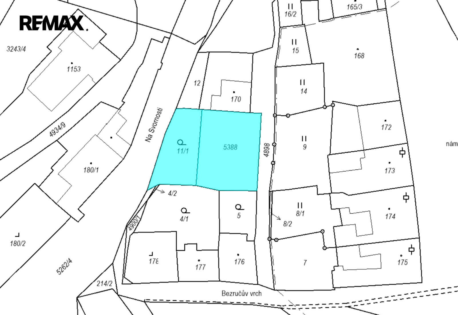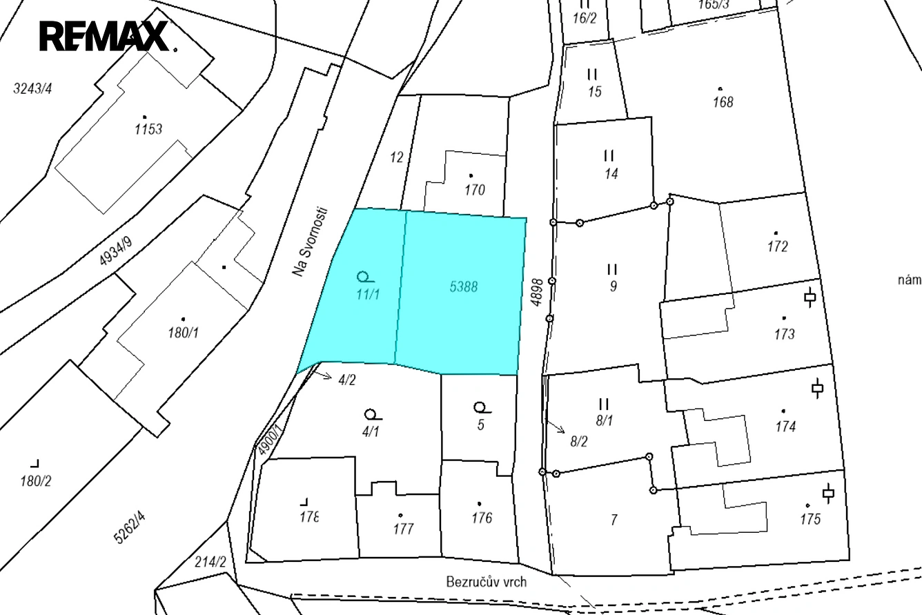 Parcela 5388, vedena jako ostatní plocha má evidovanou výměru 430 m2. Na této parcele jsou pozůstatky budovy, který zde stála.