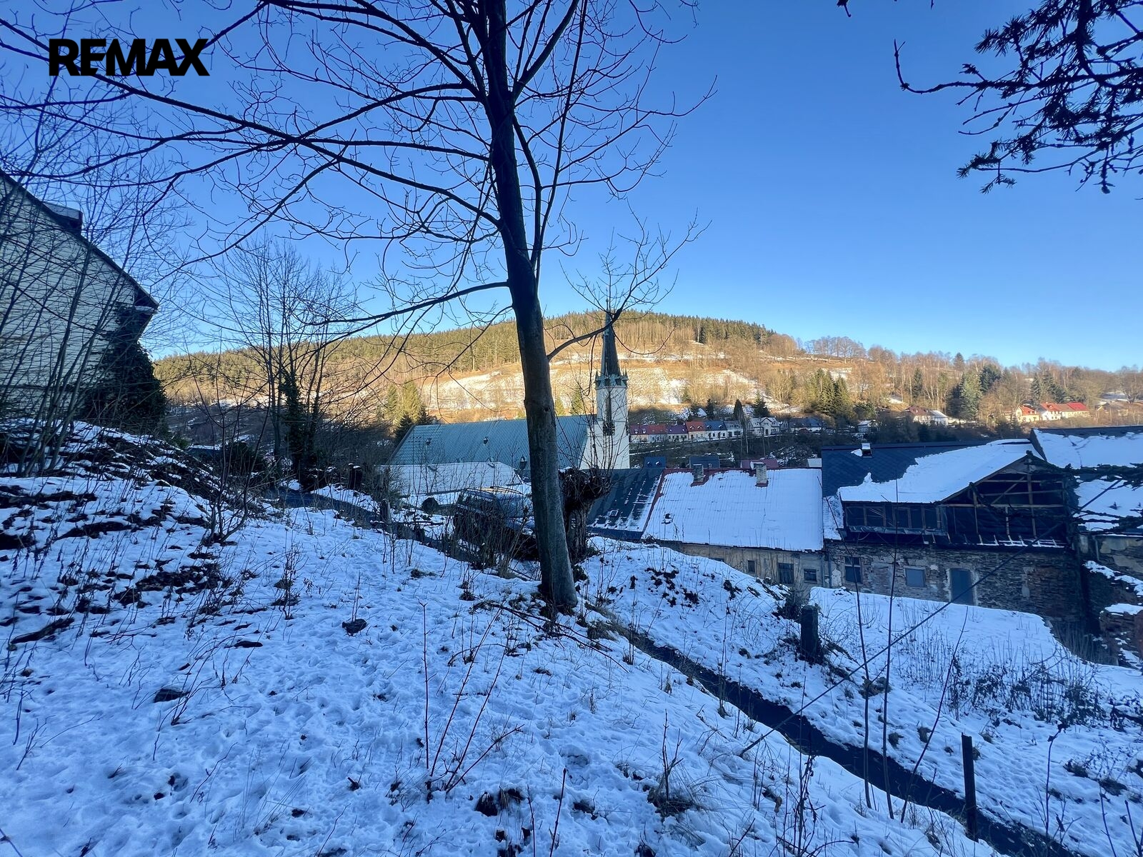 Z pozemku je krásný výhled na kostel sv. Jáchyma a do údolí. Přístup na pozemek je ze zpevněné komunikace.