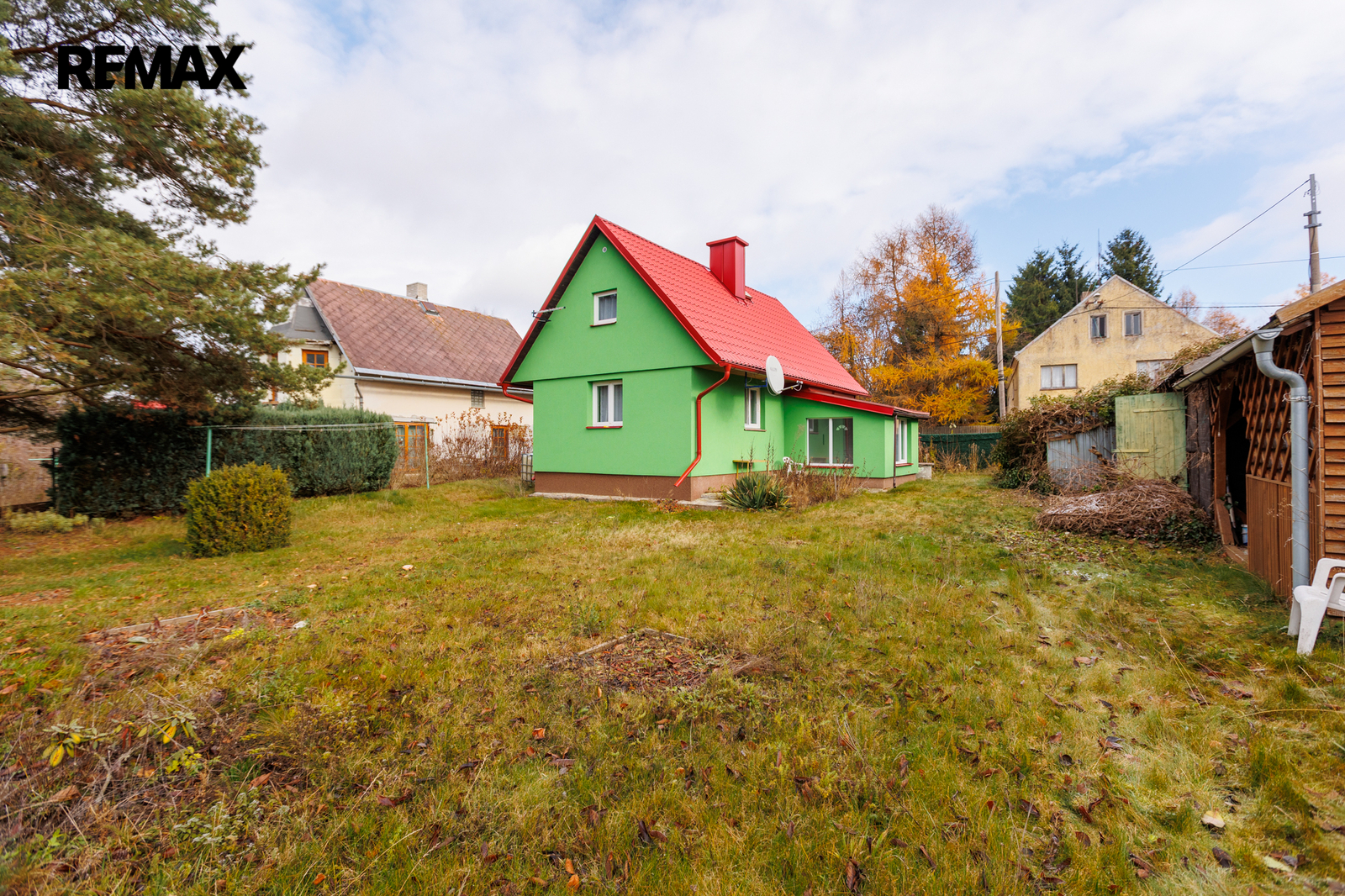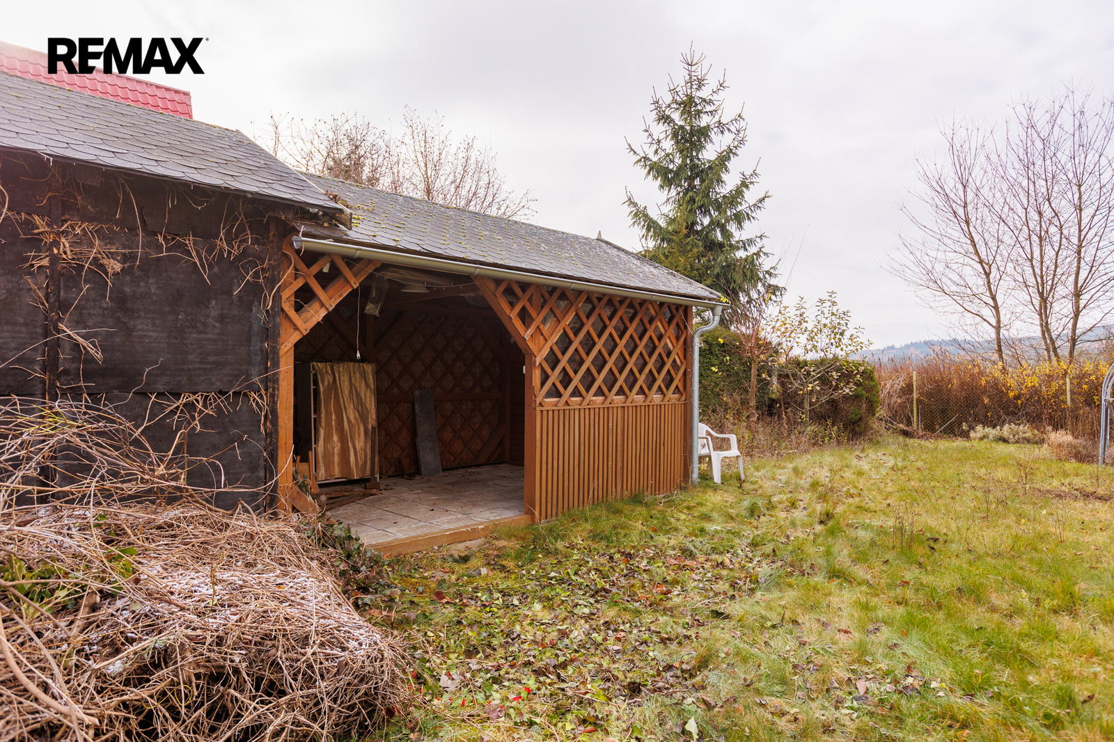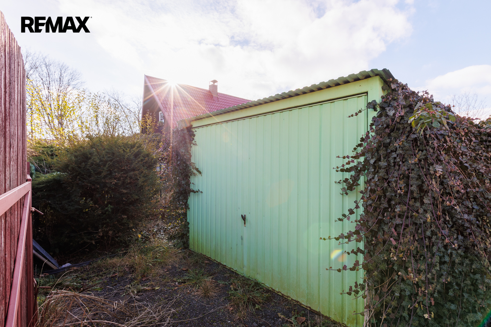 Rovinatý pozemek o výměře 674 m² je snadno udržovatelný, takže víkendy netrávíte prací, ale odpočinkem. Najdete zde kryté posezení pro grilování, dřevěnou kůlnu na nářadí a plechovou garáž.