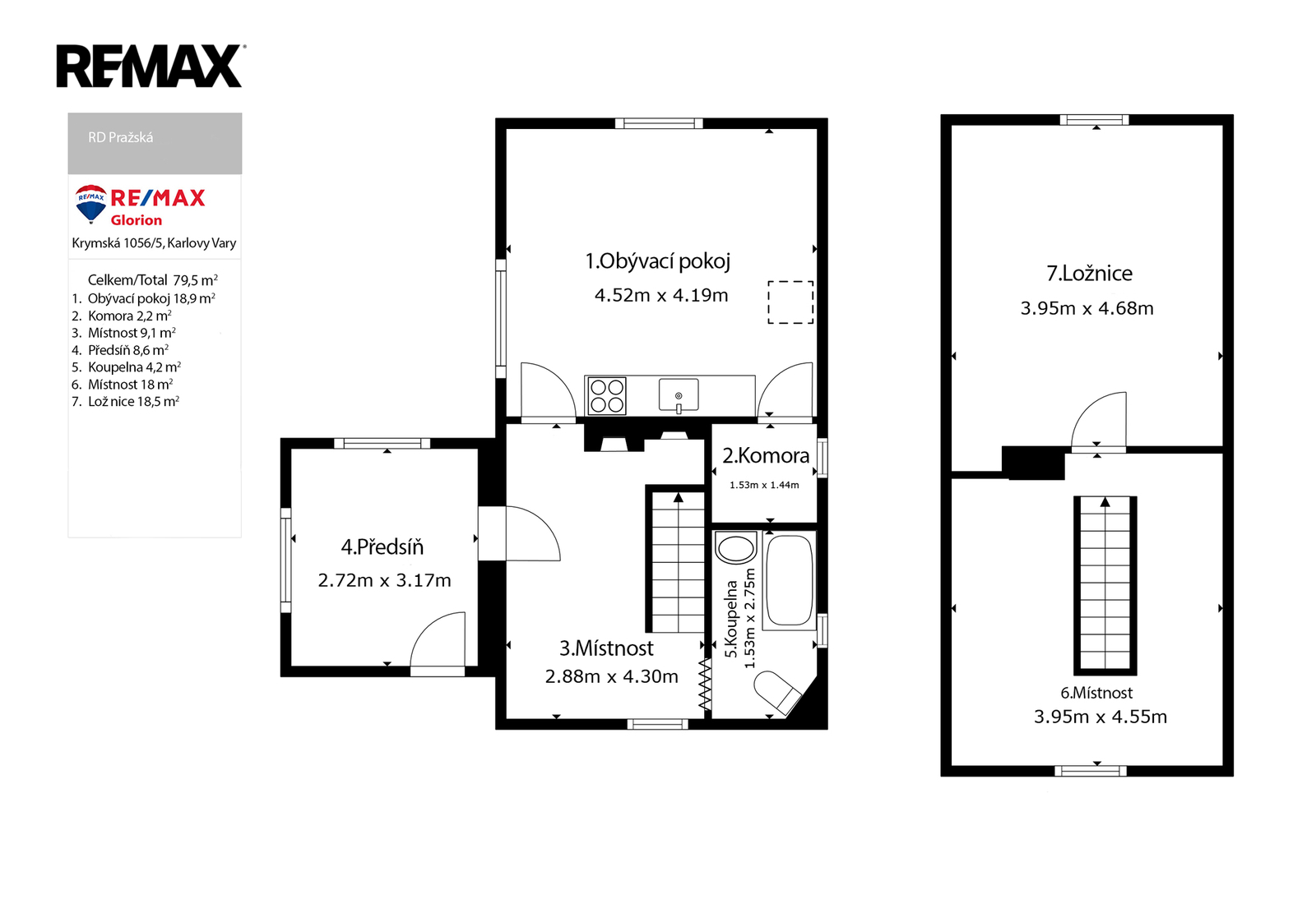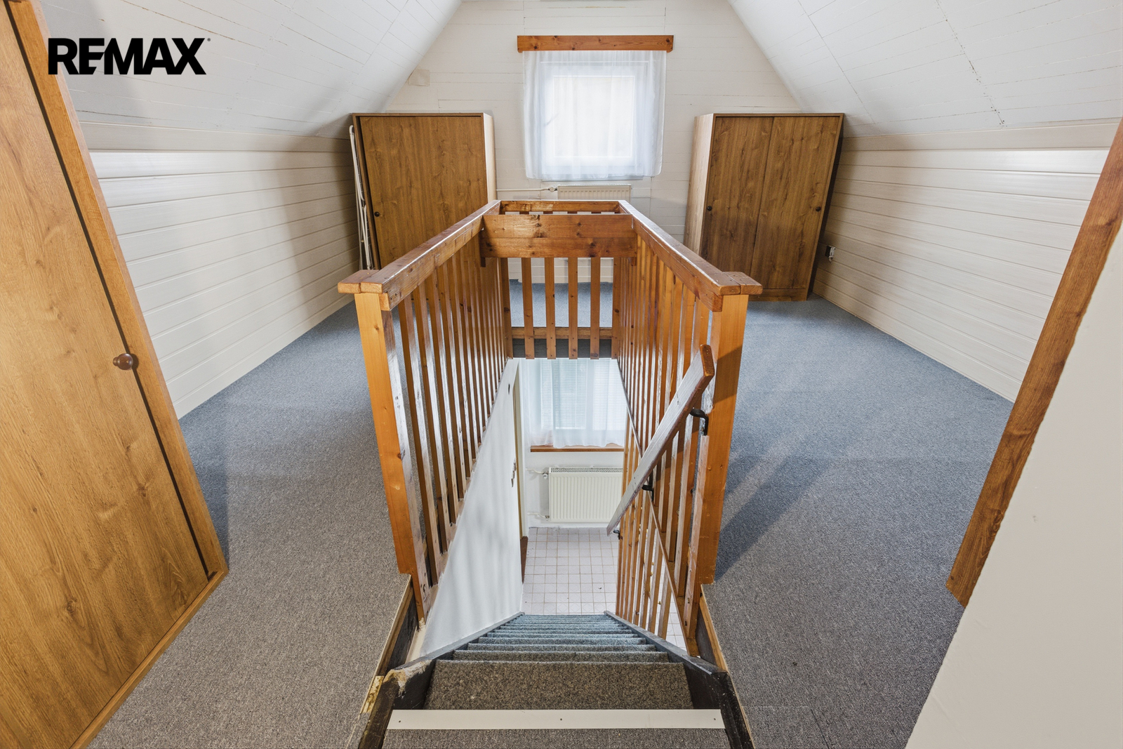 V patře se nachází jeden větší pokoj a menší mezipokoj. K dispozici je Vám také sklep, který se hodí pro uložení potravin nebo třeba i Vaší vinné sbírky.