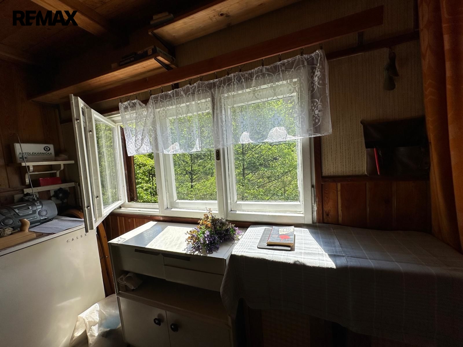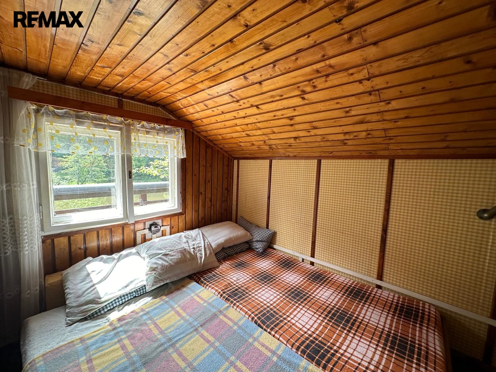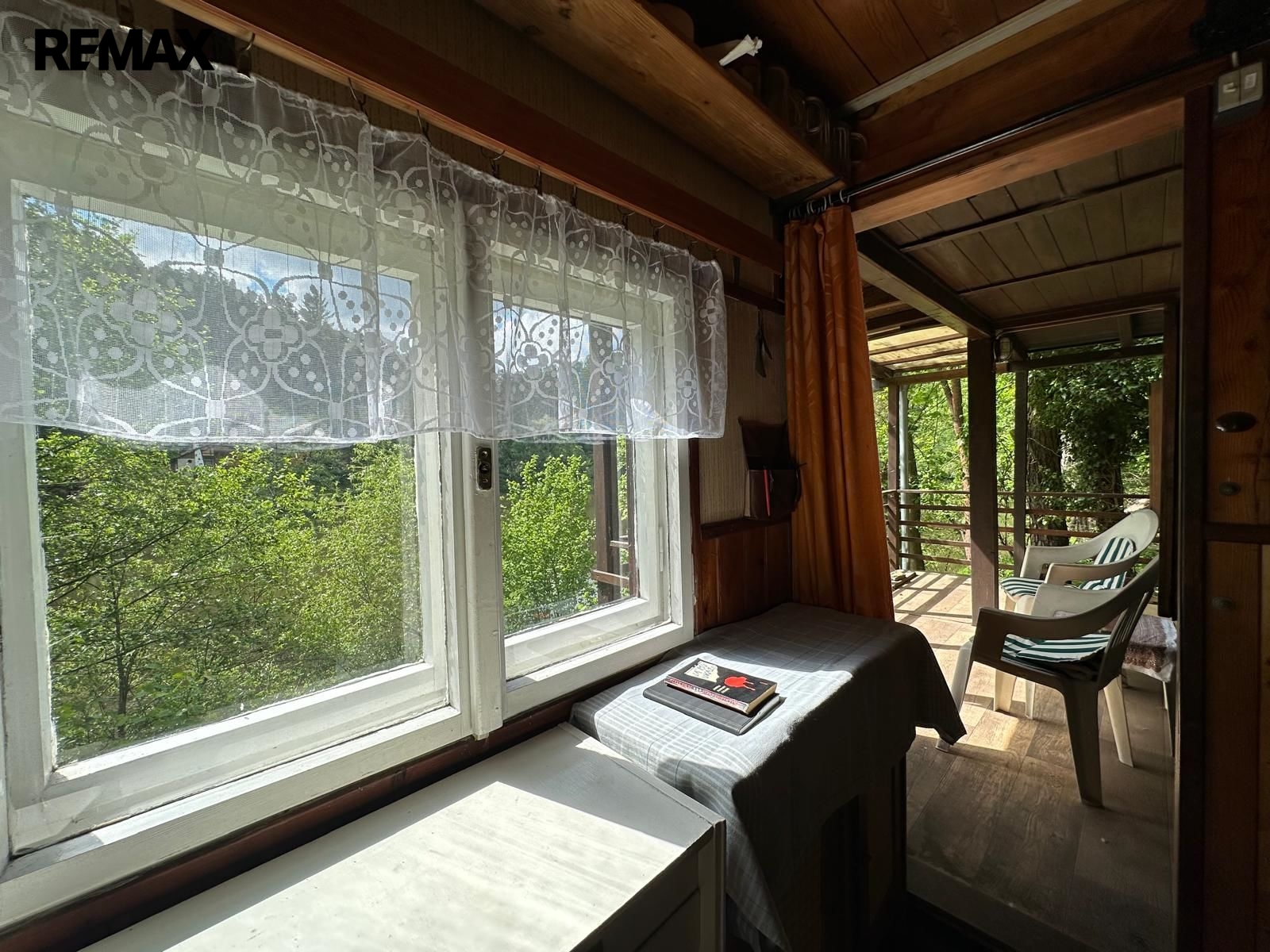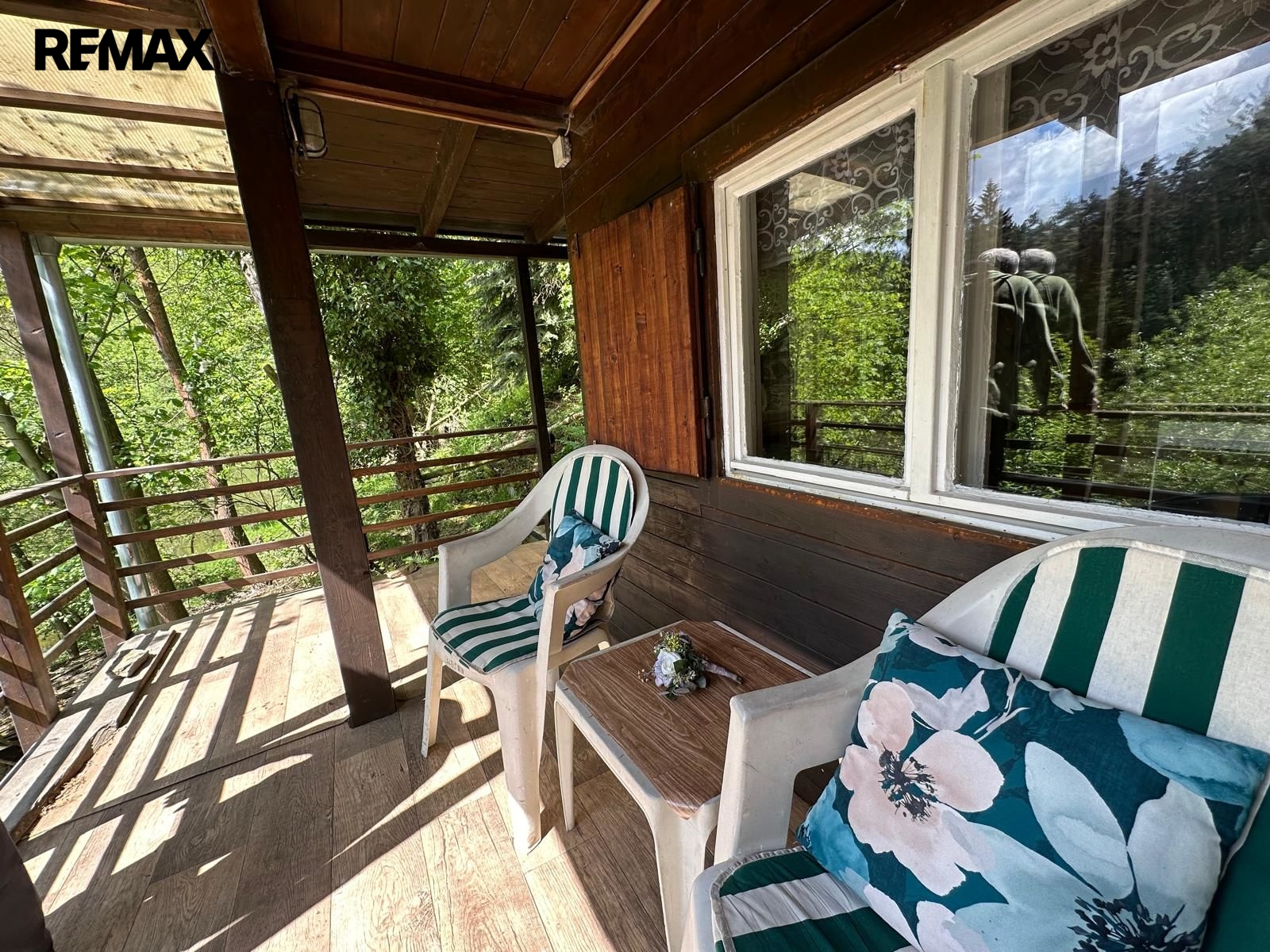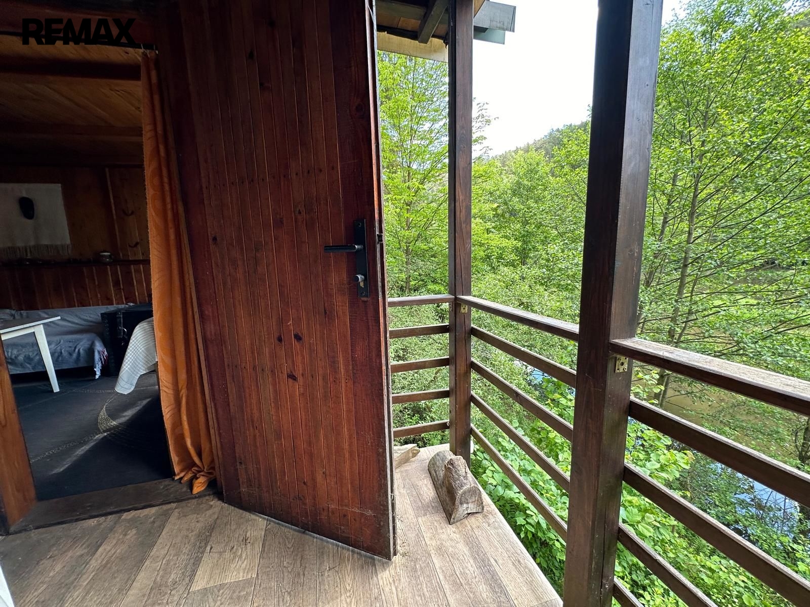 Chata se nachází na vlastním pozemku. V přízemí má menší pokoj s kuchyňkou a v podkroví pokoj na spaní. Klidné posezení skýtá zastřešená venkovní terasa s výhledem na řeku.