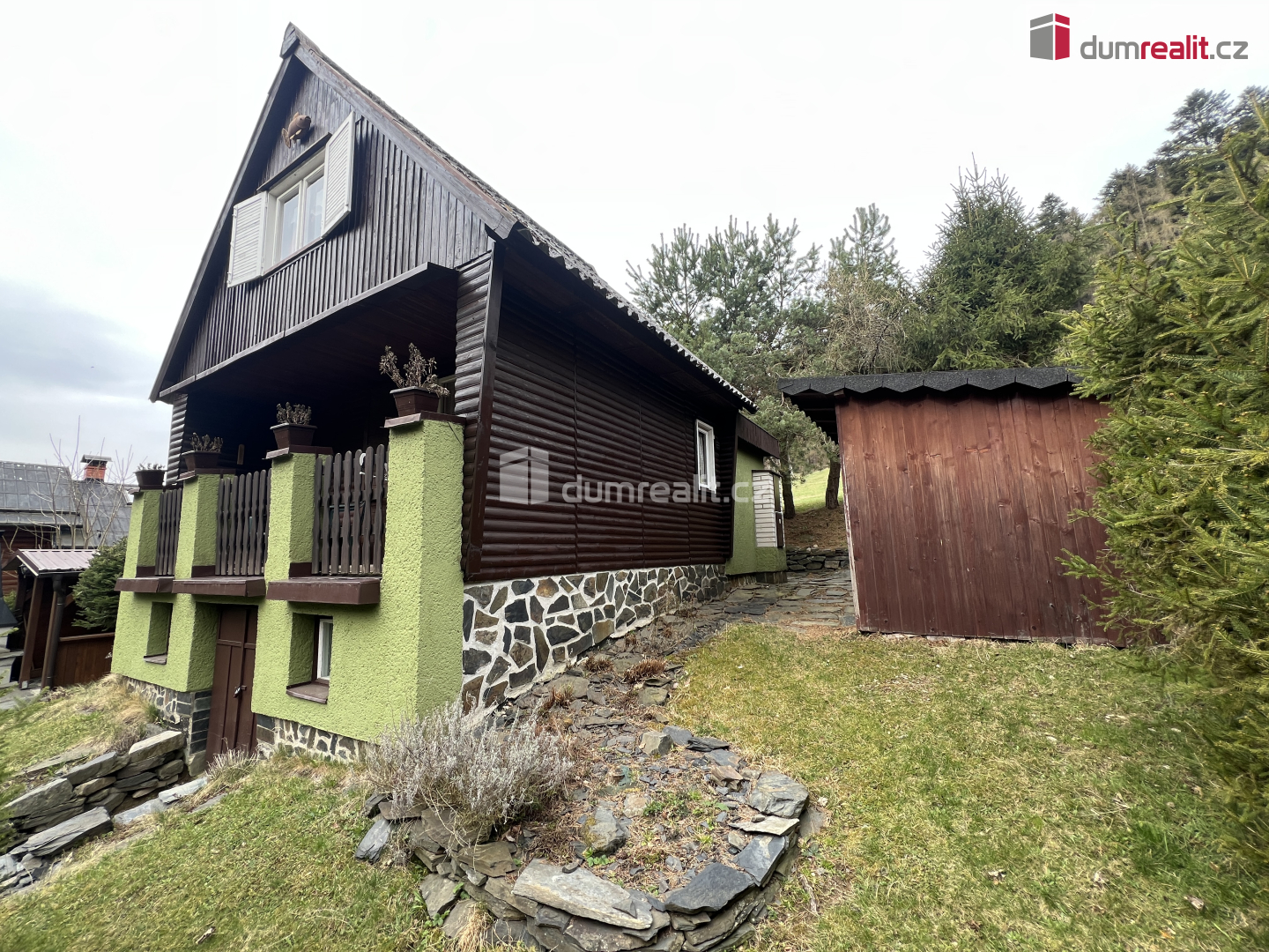 Dovolte mi Vám zprostředkovat prodej malebné chaty v obci Kružberk, okres Opava. Tato chata, zkolaudovaná v roce 1990, se nachází v klidné lokalitě obklopené přírodou a nabízí ideální zázemí pro rekreaci i víkendové pobyty. Celková plocha pozemku včetně chaty činí 344 m2, přičemž zastavěná plocha chaty je 38 m2. Dispozičně je chata řešena velmi prakticky - v přízemí se nachází obývací pokoj propojený s kuchyňským koutem, koupelna se sprchovým koutem a toaletou a vstupní předsíň. V horním patře je situováno podkroví sloužící jako lůžková část, která poskytuje dostatek prostoru pro přespání a odpočinek. Součástí chaty je také sklep, který nabízí další úložné možnosti. Chata je udržovaná a průběžně modernizovaná. Voda je zajištěna ze společné studny o hloubce cca 8 m, která prošla v roce 2025 kompletní renovací - bylo instalováno nové čerpadlo, tlaková nádoba a tři filtry na úpravu vody, stejně jako nový bojler. Studna je sdílena se sousední chatou, přičemž náklady na údržbu jsou rozděleny rovným dílem. Voda byla využívána jako užitková. Rozvody vody v přízemí jsou v plastu. Odpady jsou svedeny do dvoukomorového septiku umístěného pod skalkou. Elektroinstalace byla částečně rekonstruována do mědi (bez aktuální revize). Střecha je z vlnitého eternitu, okna jsou původní dřevěná a ošetřená. Chata byla v loňském roce nově natřena. Revize a čištění komínu proběhly na podzim, pravidelná údržba je samozřejmostí. Součástí prodeje je kompletní dokumentace ke stavbě, studni i dalším náležitostem. K pozemku kolem přístupové cesty aktuálně chybí cca 60 m2 - geodetické zaměření je připraveno a čeká se na dořešení ze strany obce. Parkování je zajištěno na pozemku přes cestu, který je pronajatý od LČR Vítkov (cca 1 000 Kč/rok). Na zahradě se nachází také dřevěná pergola, která nabízí příjemné posezení. Chata je v dobrém stavu, nicméně nový majitel může zvážit drobné úpravy dle vlastních představ - například výměnu sprchového koutu (prasklina ve vaničce) či drobnou opravu jednoho jističe ve sklepě. Lokalita Kružberk je ideální pro milovníky přírody, turistiky a klidného odpočinku. V blízkosti se nachází vodní nádrž Kružberk, množství turistických tras i zajímavých výletních míst. Ideální místo pro ty, kteří hledají klid a soukromí v přírodě. Pro více informací neváhejte kontaktovat makléře. V rámci služeb zajistíme kompletní právní servis i vyřízení financování. Doporučujeme prohlídku! Ev. číslo: 655063. Bližší informace Vám sdělí Ing. Jarmila Špirutová, 739 123 332, spirutova@dumrealit.cz