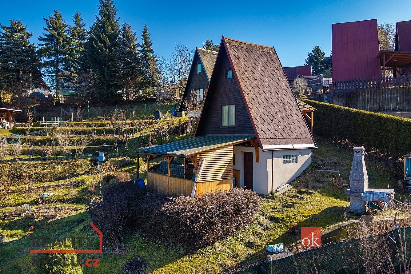Prodej útulné chaty ve Stráži nad Nisou s výhledem na Ještědský hřeben a golfové hřiště.Nabízíme k prodeji útulnou a udržovanou chatu v OV s č.ev., v klidné chatové osadě ve Stráži nad Nisou. Chata je plně vybavená a připravená k okamžitému užívání. Dispozice chaty nabízí v přízemí kuchyň, v patře prostor na spaní a další obyvatelné podkroví s postelí, takže poskytuje dostatek místa pro rodinu i návštěvy. Je zde prostor pro vlastní úpravy s možností prostor zvětšit a přistavět. Je k dispozici vyjádření od stavebního úřadu. K dispozici je elektřina, přípojka užitkové vody do chalupy. V osadě je společná studna. Příjemným místem pro odpočinek je zastřešená terasa a venkovní krb pro posezení s rodinou či přáteli.Na pozemku se nachází ovocné keře, bylinky a připravené zázemí pro bazén. Velkou výhodou je soukromí a přátelská komunita dlouholetých majitelů v osadě.Chata je ideální pro víkendové pobyty, odpočinek i trávení volného času. V těsné blízkosti vede cyklostezka do Německa a Polska. Skvělá dojezdová vzdálenost ze středu Liberce MHD busem (za 15min.) i autem (za 10min.). K chalupě náleží parkovací stání na vlastním pozemku. Roční náklady: voda zdarma, el. en. 500Kč-700Kč, daň z nemovitosti 270Kč. Rádi pomůžeme s financováním i pojištěním. Možno financovat celé, nebo částečně úvěrem, splátka na celou částku cca 10.500/M.