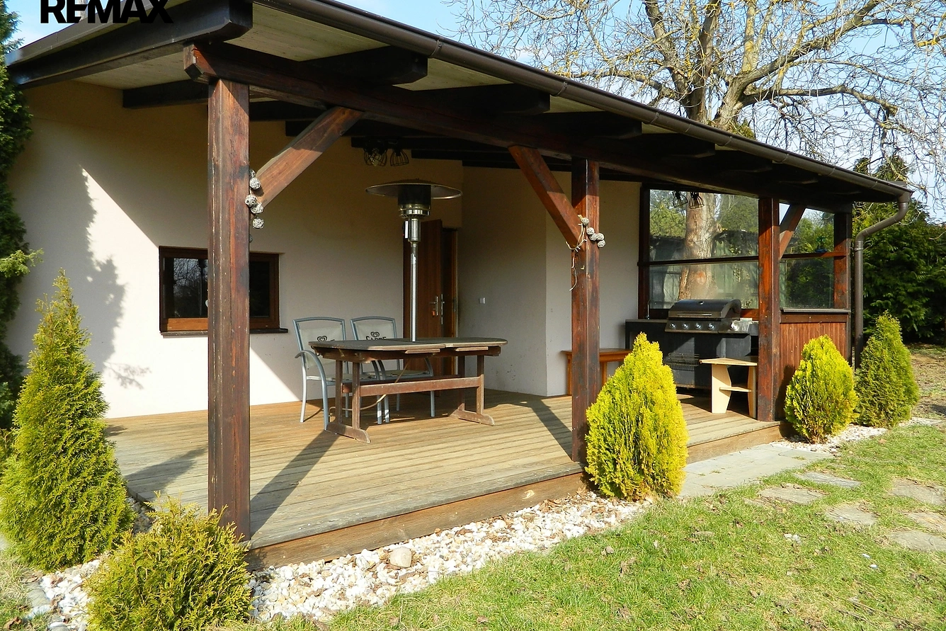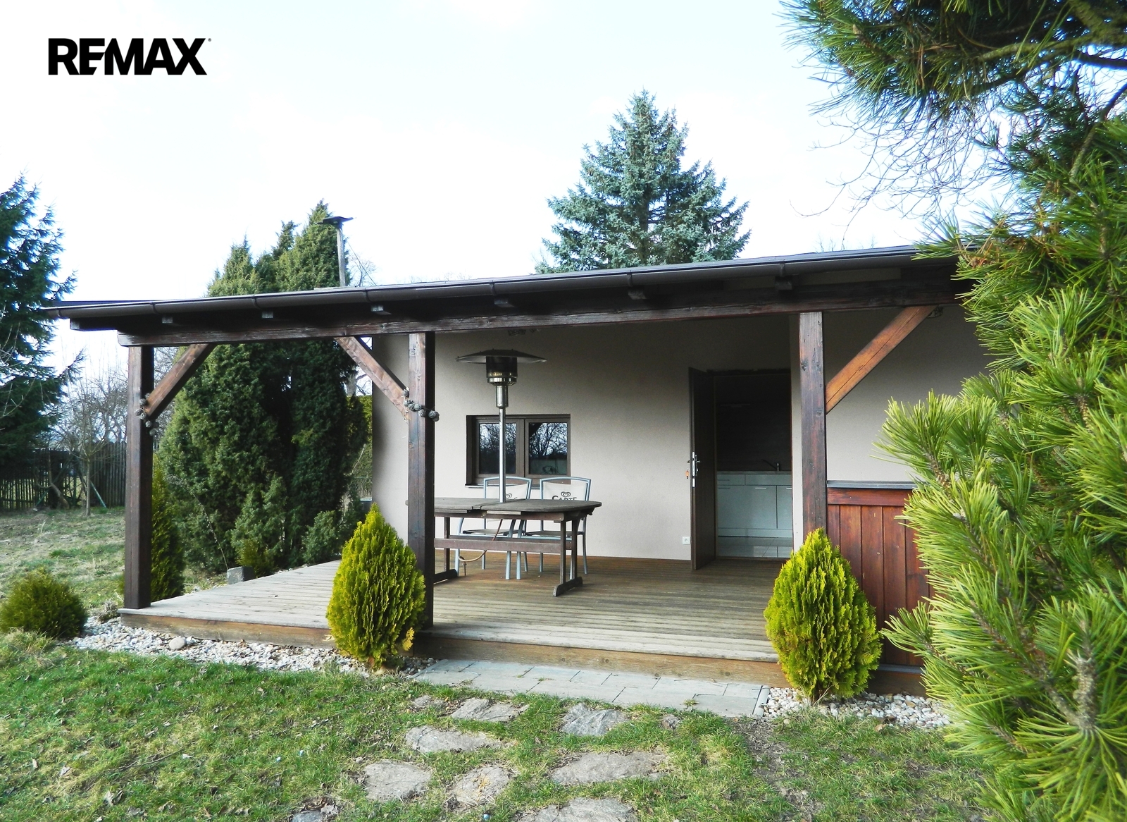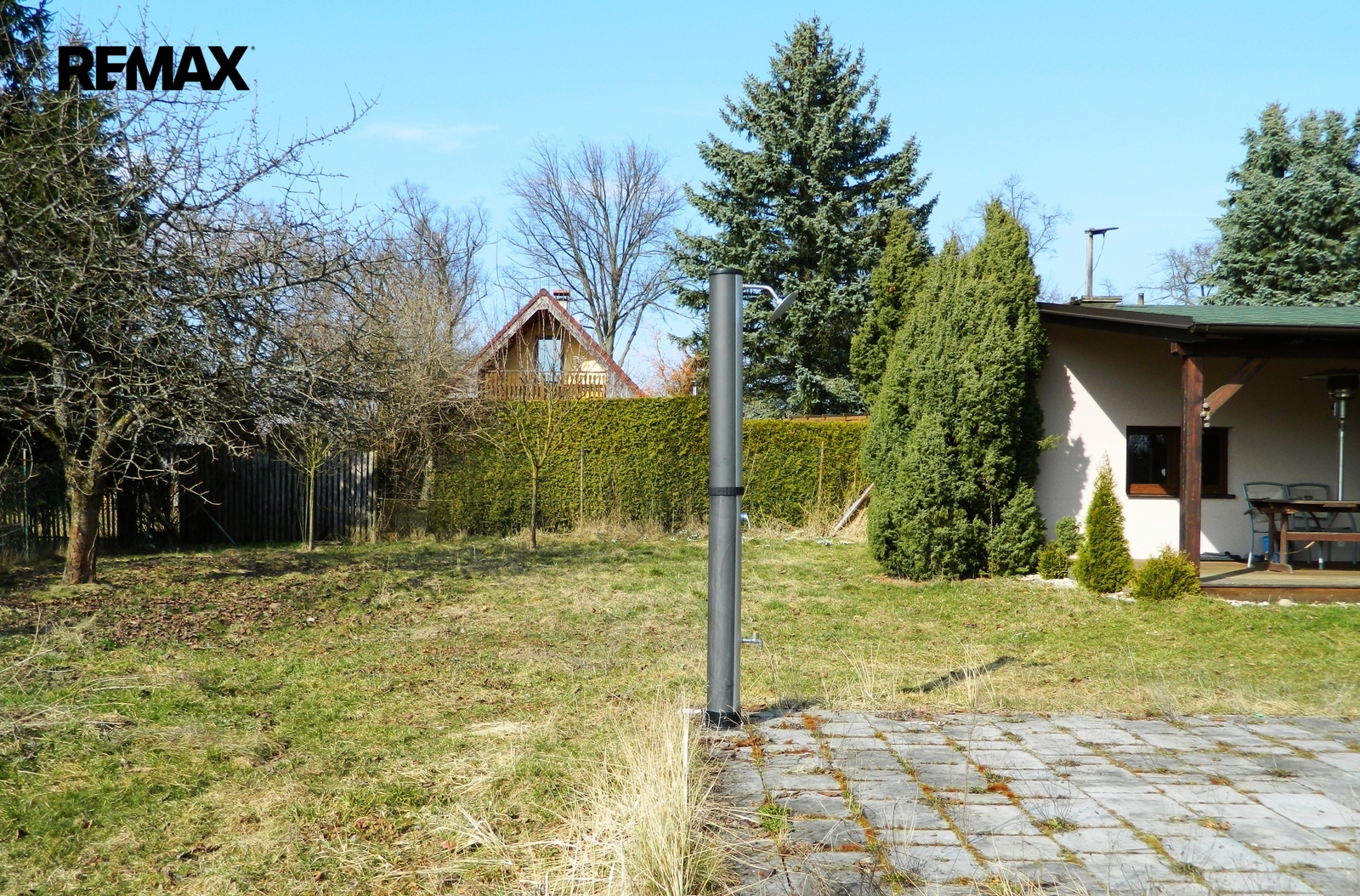 Velkou předností je rozlehlý pozemek o výměře 1.524 m², který nabízí i potenciál pro případnou další výstavbu (zastavitelnost pozemku je 80 m2, co se týče stavby, další zastavěná plocha může mít dalších 120 m2.). Zděná přízemní chata s velkou terasou je postavena v zadní části pozemku, čímž skýtá dostatek soukromí. Nahlédněte i na fotografie a situační plánek interiéru. Dispozice chaty je 2 + kk, včetně WC a koupelny se sprchovým koutem. Chata je částečně podsklepena, ve sklepě se nachází elektrický bojler na ohřev 80 litrů vody a čerpadlo na vodu. Teplotu interiéru lze regulovat nástěnnou klimatizační jednotkou (vytápění i chlazení) napojenou na tepelné čerpadlo vzduch-vzduch. Alternativně je možno používat přímotopy. Voda je čerpána z vlastní 6 metrů hluboké studny. Odpady jsou svedeny do septiku, z něhož jde voda do pískové filtrace. V chatě je k dispozici 240 i 380 V. Po dohodě s kupujícím je možné ponechat na místě vybavení a zařízení.