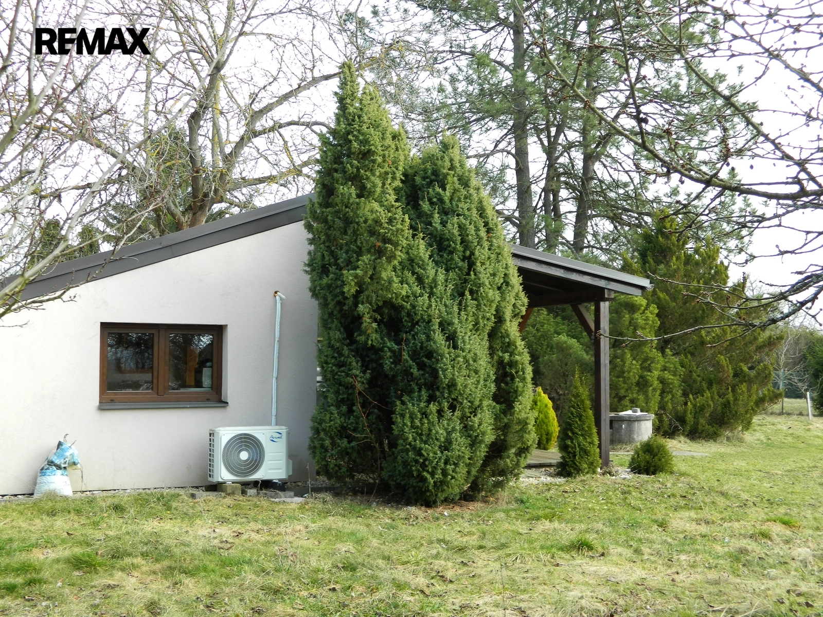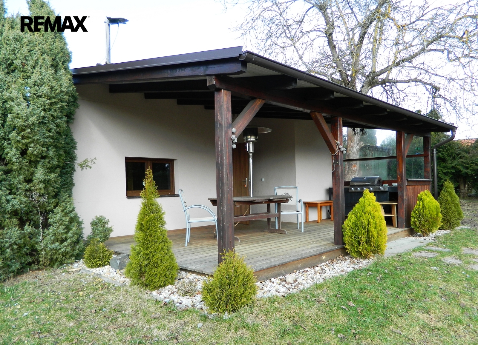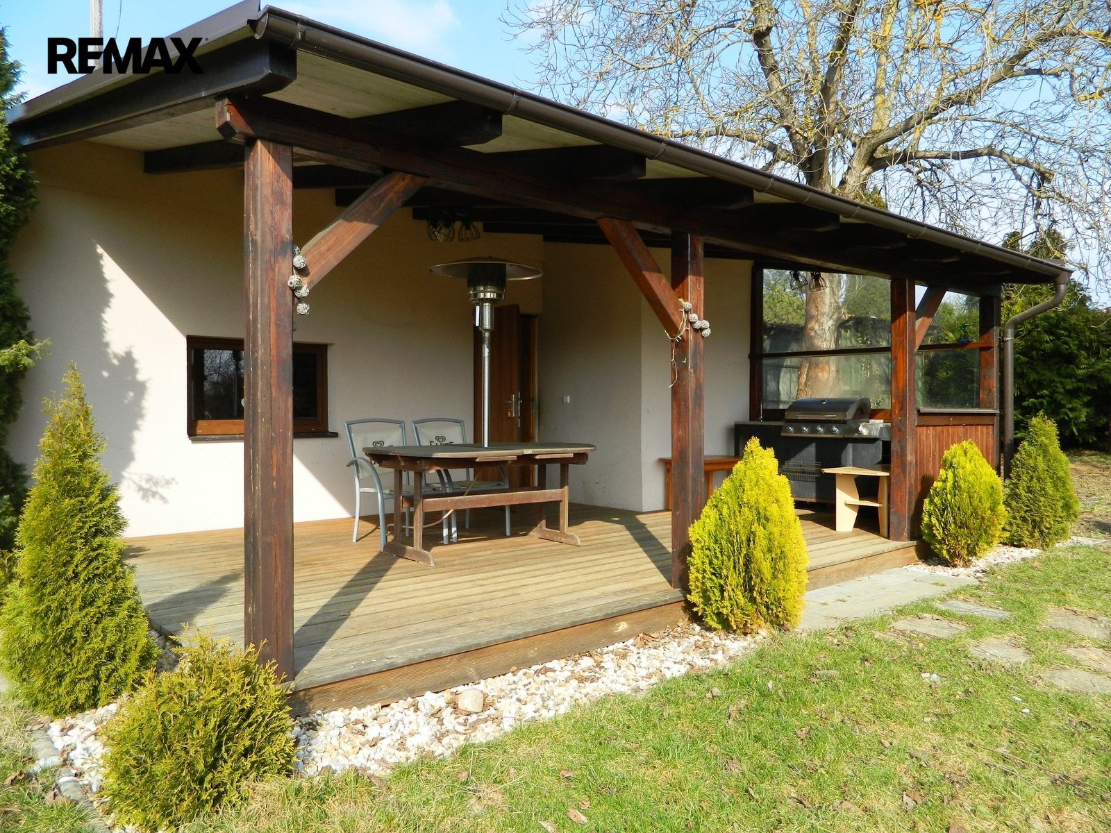 Velkou předností je rozlehlý pozemek o výměře 1.524 m², který nabízí i potenciál pro případnou další výstavbu (zastavitelnost pozemku je 80 m2, co se týče stavby, další zastavěná plocha může mít dalších 120 m2.). Zděná přízemní chata s velkou terasou je postavena v zadní části pozemku, čímž skýtá dostatek soukromí. Nahlédněte i na fotografie a situační plánek interiéru. Dispozice chaty je 2 + kk, včetně WC a koupelny se sprchovým koutem. Chata je částečně podsklepena, ve sklepě se nachází elektrický bojler na ohřev 80 litrů vody a čerpadlo na vodu. Teplotu interiéru lze regulovat nástěnnou klimatizační jednotkou (vytápění i chlazení) napojenou na tepelné čerpadlo vzduch-vzduch. Alternativně je možno používat přímotopy. Voda je čerpána z vlastní 6 metrů hluboké studny. Odpady jsou svedeny do septiku, z něhož jde voda do pískové filtrace. V chatě je k dispozici 240 i 380 V. Po dohodě s kupujícím je možné ponechat na místě vybavení a zařízení.