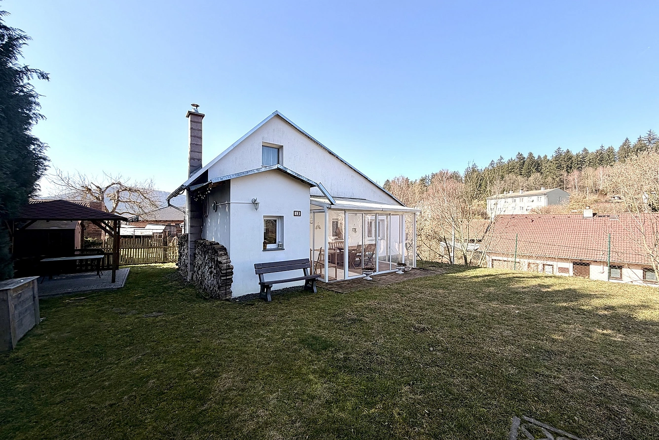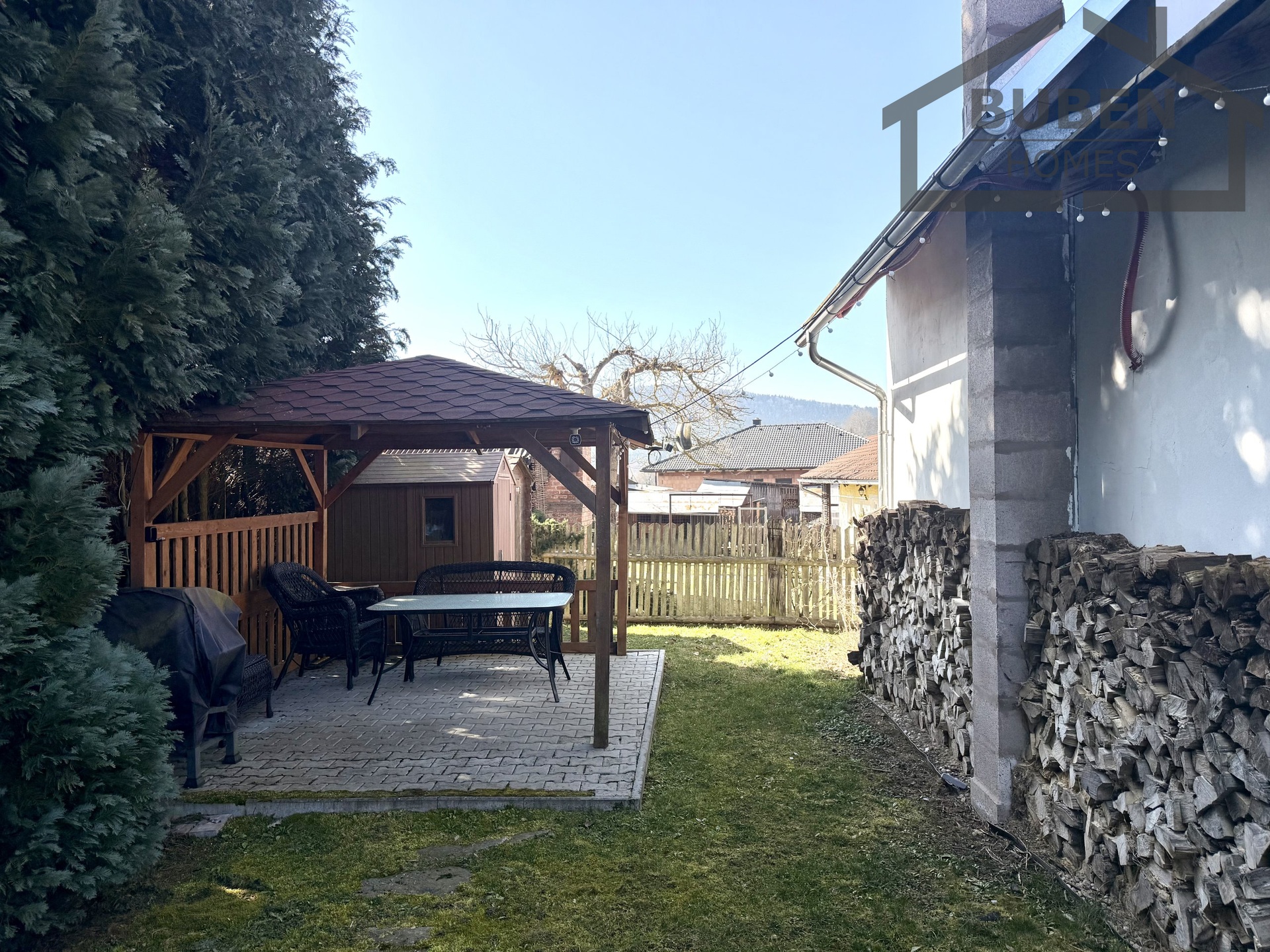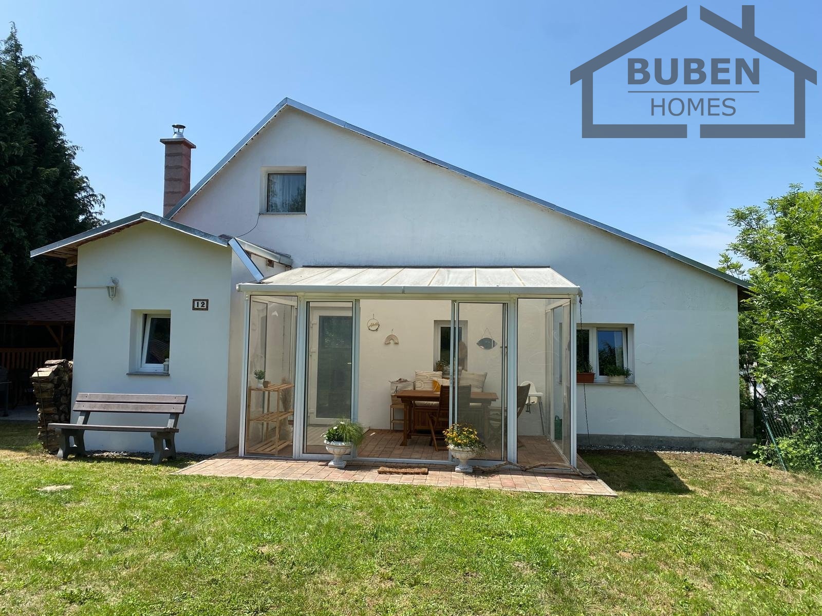 Dovoluji si Vám nabídnout k prodeji kompletně vybavenou chatu (s přiděleným evidenčním číslem) k rekreaci v centru obce Třemešné. Výměrová plocha zahrady je 690 m2, zastavěná plocha je o výměře 68 m2. Užitná plocha domu činí 80 m2. Předmětem prodeje je zděný objekt o dispozici 2+1 s navazující zimní zahradou, pergolou, kolnou a zahradou s bazénem. Po dohodě je možný odkup zahradního domku umístěného v zadní části zahrady. Přízemí chaty tvoří obývací pokoj s krbovými kamny, kuchyňský kout, chodba se schodištěm, koupelna s vanou s technickou místností a samostatné WC. V podkroví je vybudovaná ložnice. V ceně je zahrnutý kuchyňský kout včetně horkovzdušné trouby, sklokeramická varná deska a kompletní vybavení chaty včetně venkovního bazénu s filtrací, vybavení zimní zahrady a pergoly. Chata je vytápěna krbovými kamny v obývacím pokoji a eklektickými přímotopy, které jsou v ceně. Objekt je napojen na elektřinu, veřejný vodovod a kanalizaci. Na pozemku je zároveň studna, která slouží jako užitková. Pozemek je kompletně oplocen. Po drobných úpravách je možné celoroční užívání. K chatě je bezproblémový příjezd po zpevněné komunikaci s možností vjezdu na pozemek + parkovací stání na veřejné komunikaci.Tato nabídka je vhodná pro rodinu s dětmi, či důchodce. Hledáte-li místo k odpočinku, je tato nabídka dobrá volba. Nabízí možnosti houbaření a trávení času v okolní přírodě. Obec Třeměšné je poklidná příhraniční obec, která leží 10 km od dálničního přivaděče a 6 km od města Přimda s občanskou vybaveností, kde je možné mimo jiné využít místní krytý bazén. Z obce je zajištěné pravidelné autobusové i vlakové spojení.