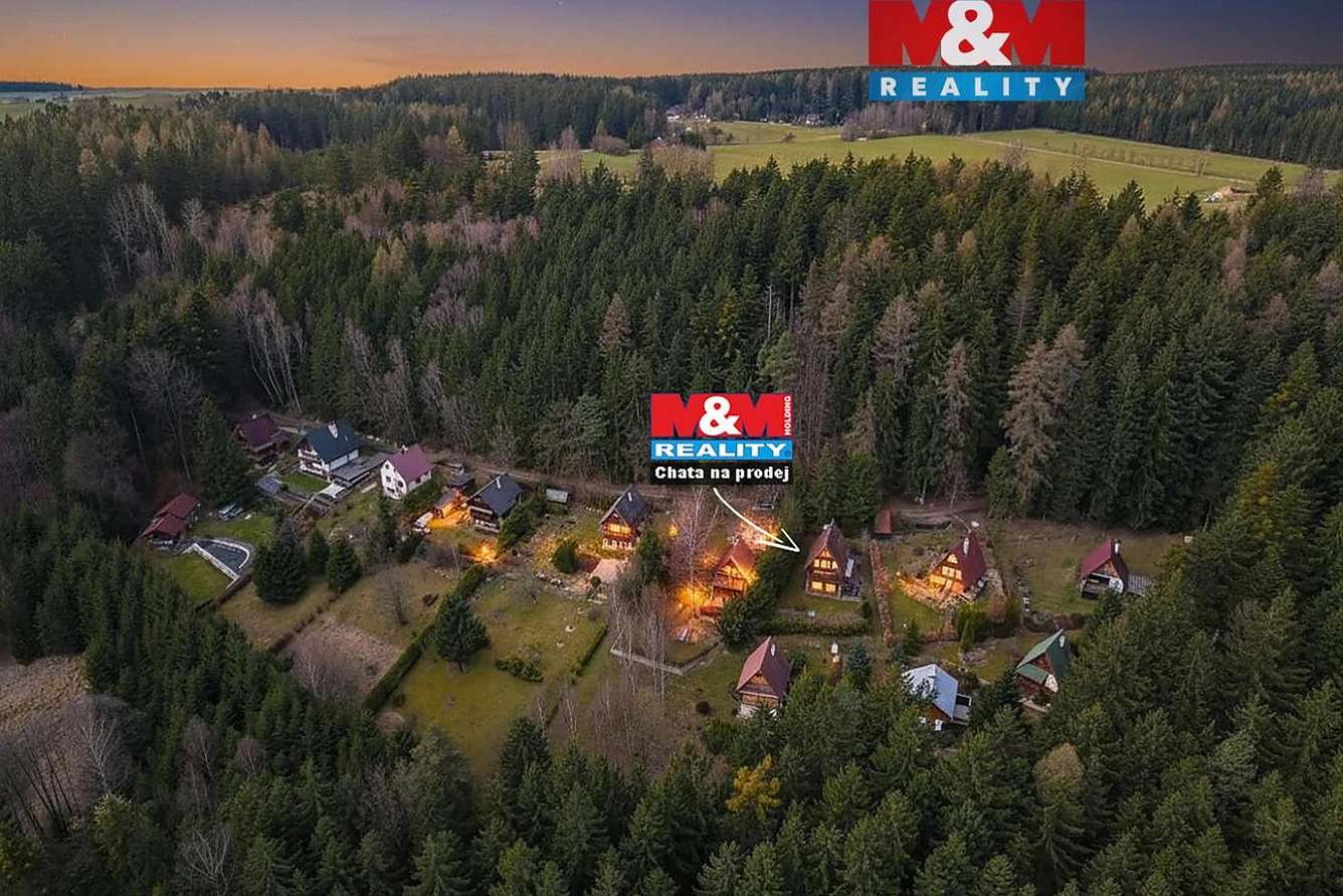 Prodej krásné dřevěné chaty se zděnými základy s číslem popisným v části Peklo (Peklo je název části obce, jinak je to ráj :) )