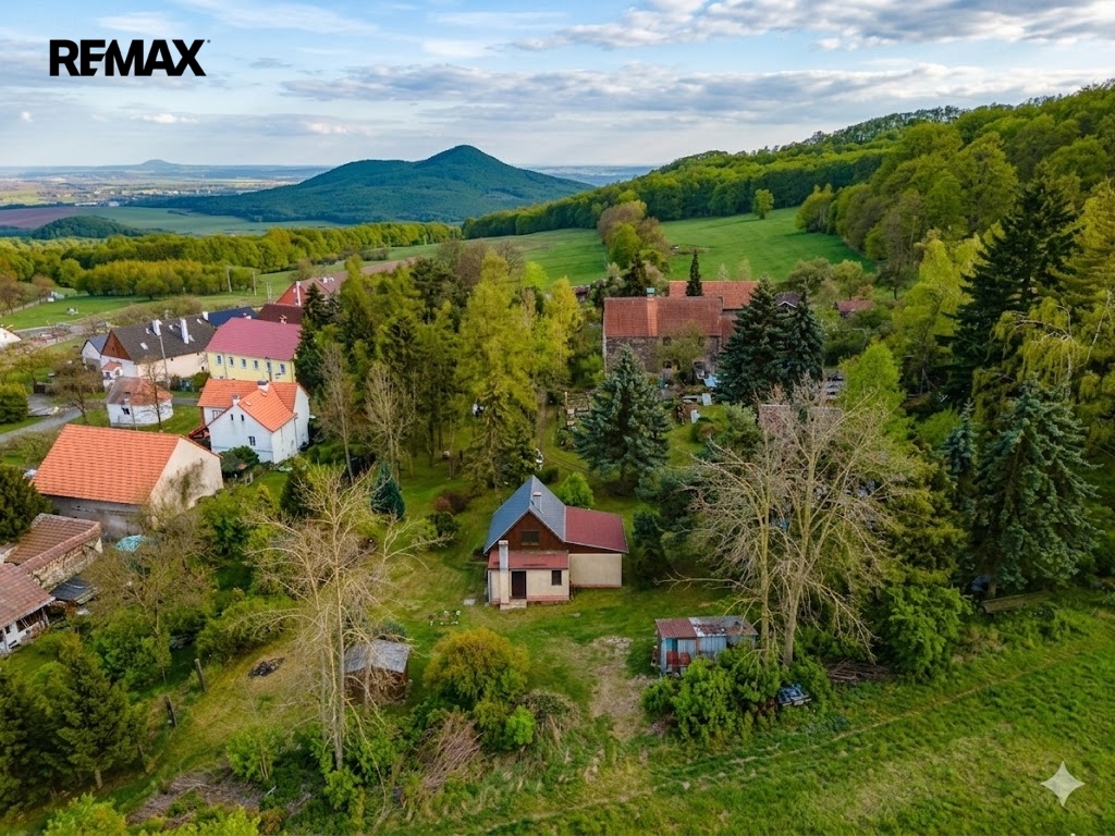 Pozemek nabízí dostatek soukromí pro relaxaci, grilování nebo zahradničení, s výhledem na dominanty Českého středohoří.